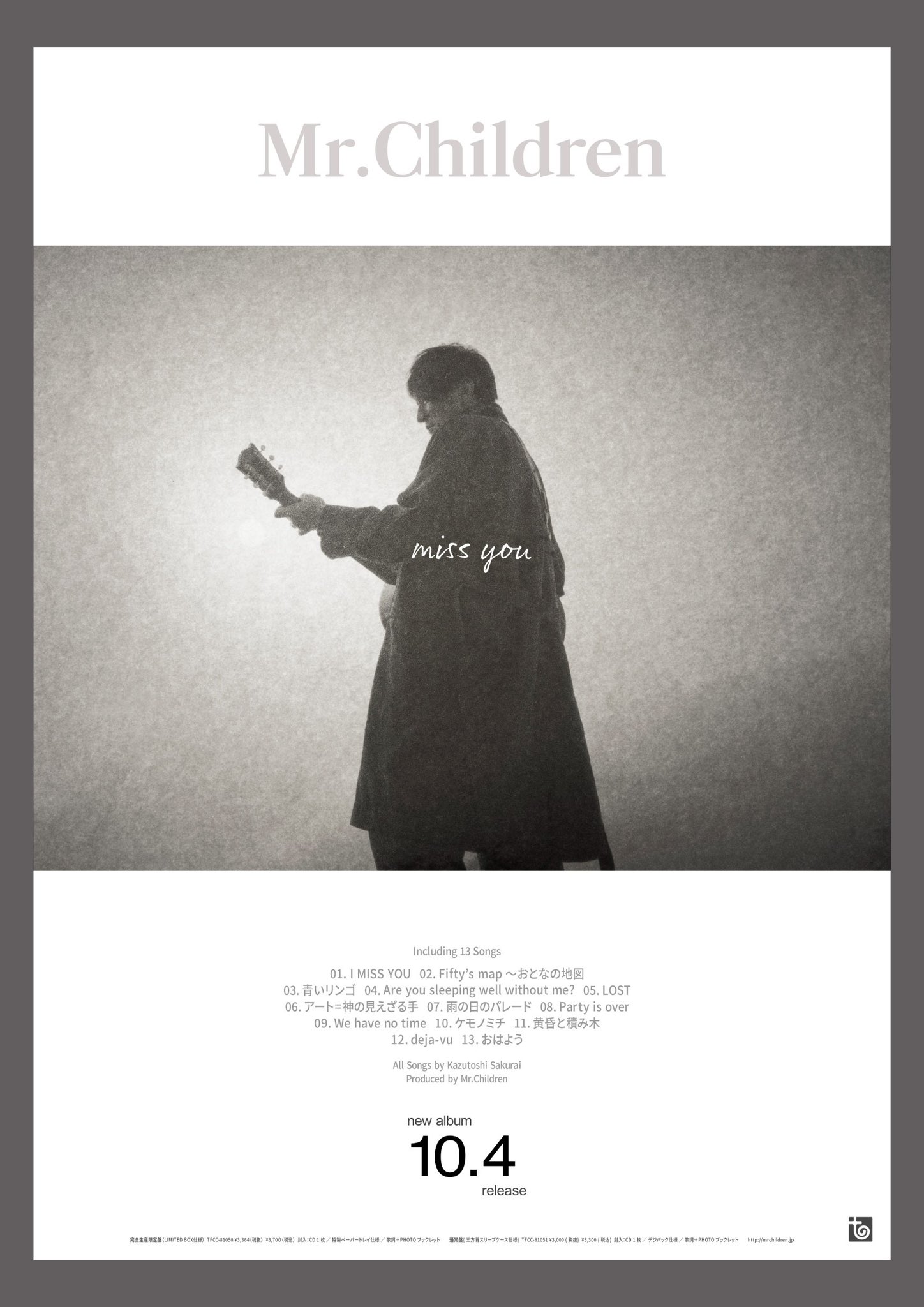 - タレントグッズ > ミュージシャン > Mr.Children『miss you』アルバム告知B2ポスター 桜井和寿 Mr.Children/桜井和寿/miss you/最新B2店頭ポスター 、2年10カ月ぶり