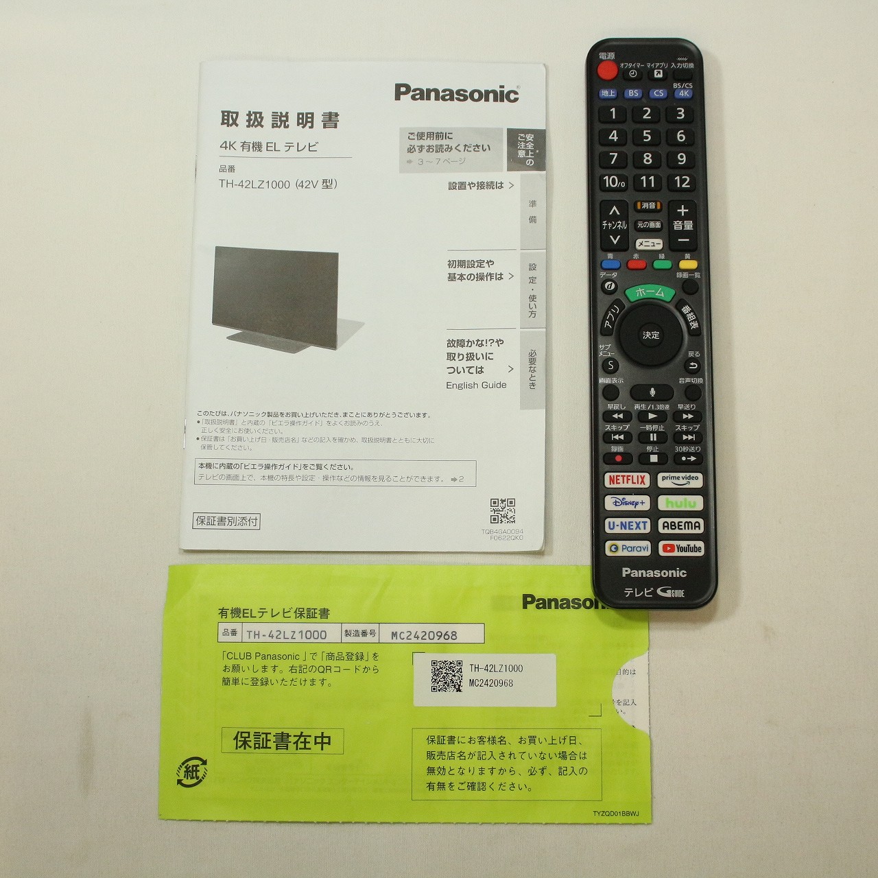 - テレビ・映像機器 > テレビ > パナソニック 42型有機ELテレビ TH-42LZ1000 リモコン取説付 パナソニック 42型有機ELテレビ VIERA TH-42LZ1000 リモコン取説付