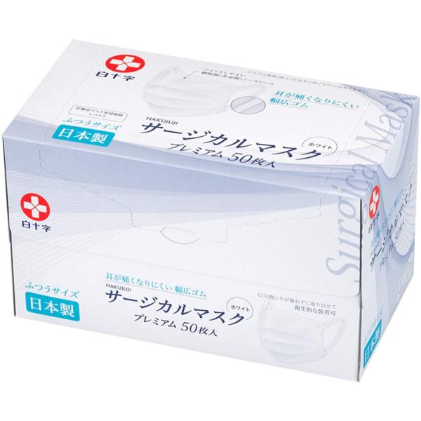 - 救急・衛生用品 > 衛生医療用品・救急用品 > 白十字サージカルマスク 50枚入 /耳の痛くなりにくいマスク ホワイト(10箱) 白十字 サージカルマスク プレミアム ふつうサイズ 50枚入 (マスク